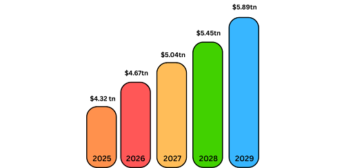 According to a report by Statista, the market revenue of e-commerce applications is expected to reach $4.32 trillion by the end of 2026. With a CAGR of 8.02%, the revenue could reach $5.89 trillion by 2029.