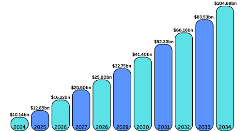 As per the report by Precedence Research, the global mWallet market cap in 2025 was $12.85 billion, and by the end of 2026, it is expected to be $16.22 billion. With a CAGR of 26.30%, the market cap could reach $104.69 billion by 2034.