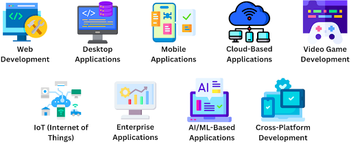 - Applications: Used to develop apps for ASP.NET (web), Xamarin (mobile), and, more recently, MAUI for cross-platform UI development.