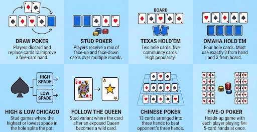 Poker comes in many types, such as Texas Hold’em, Omaha, and Seven-Card Stud. You need to decide which types to include, as each has its own rules and fan base. Offering too many options can confuse new players, while too few can limit your audience.